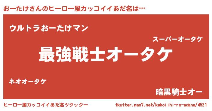 | 女子向けラノベタイトル風あだ名 | 『闇のおーたけ』『おーたけの雑貨屋さん』 |