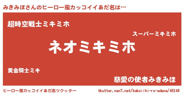 | 意味不明あだ名 | 『永久保存みきみほ』『自称みきみほ』 |