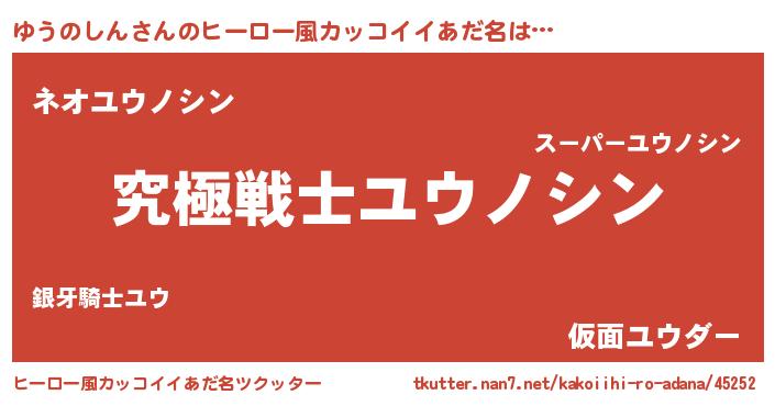 | 男性向けラノベタイトル風あだ名 | 『うちのゆうのしんが世界を掌握している!』 |