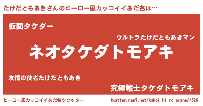| ヘコむあだ名 | 『たけだともあき(爆)』『なまこ酢』 |