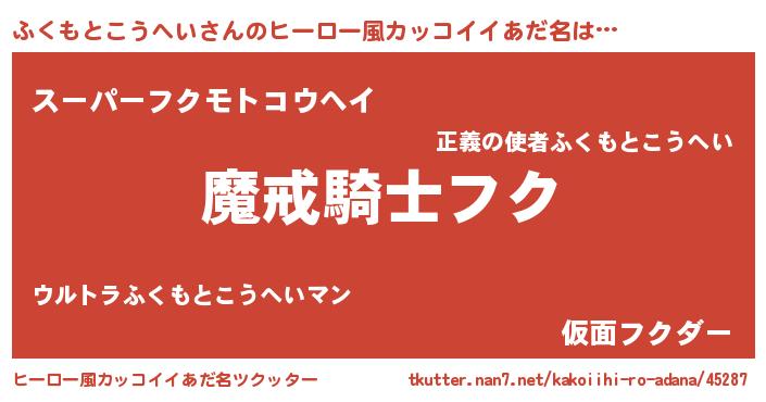 | 女子向けラノベタイトル風あだ名 | 『ふくもとこうへいの卵を拾いまして』 |