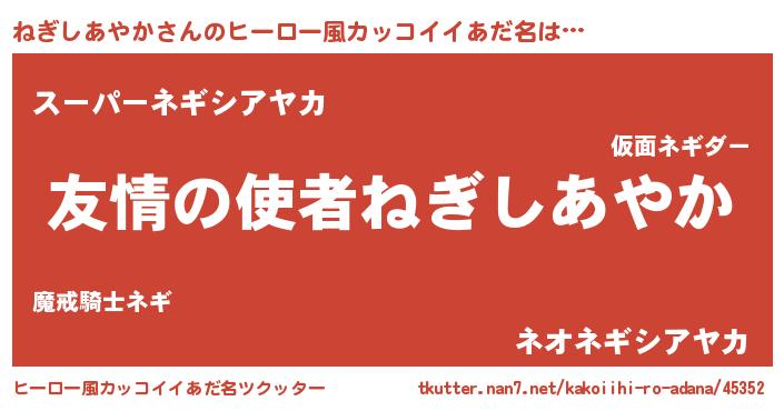 | ヘコむあだ名 | 『ねぎもー』『ねぎしあやか(笑)』 |