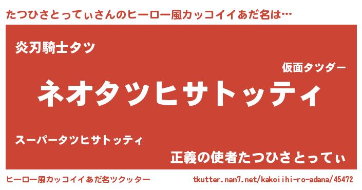 | 伝説のあだ名 | 『古文書に記された暗殺者たつひさとってぃ』 |