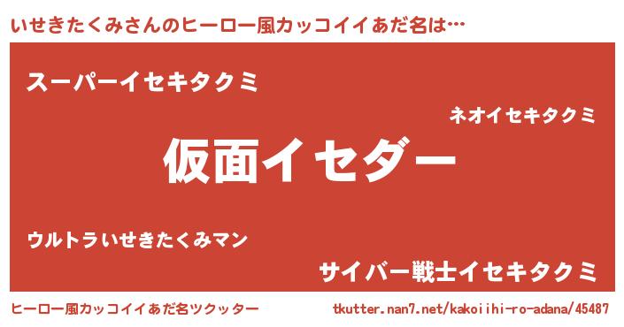 | ヘコむあだ名 | 『いせにゅー』『いせきたくみ(笑)』 |