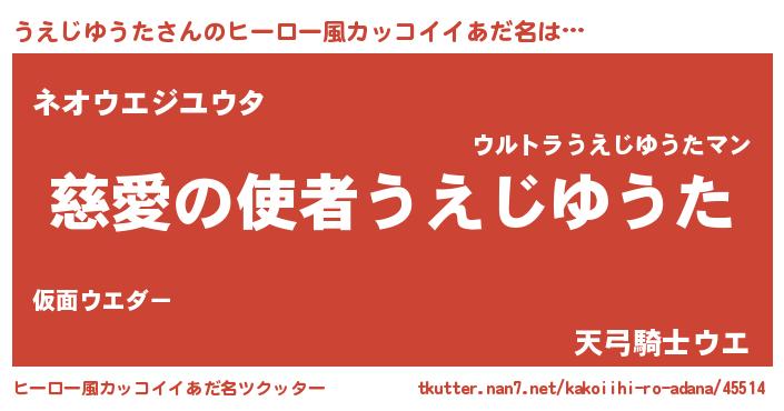 | 男性向けラノベタイトル風あだ名 | 『うえじゆうたに滅ぼされるだけの簡単なお仕事です』 |