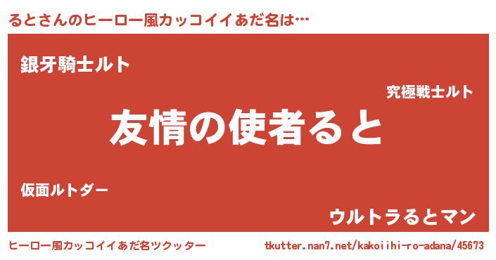 | 男性向けラノベタイトル風あだ名 | 『おまえをオタクにしてやるから、俺をるとにしてくれ! 』 |