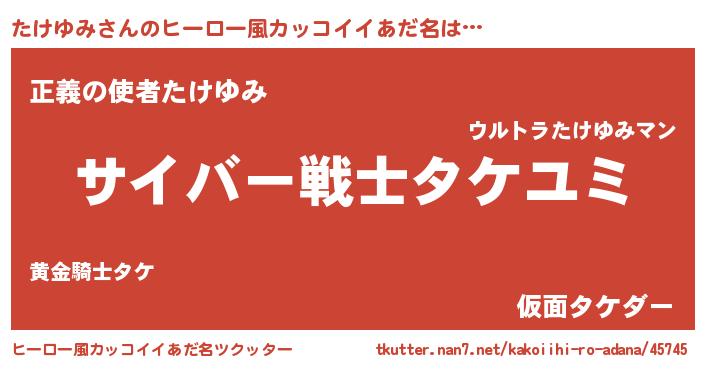 | 女子向けラノベタイトル風あだ名 | 『闇のたけゆみ』『たけゆみの雑貨屋さん』 |