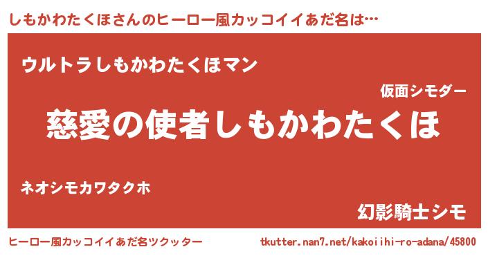 | 伝説のあだ名 | 『救世主となる占い師しもかわたくほ』 |