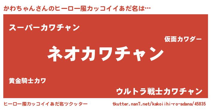 | 男性向けラノベタイトル風あだ名 | 『かわちゃんに滅ぼされるだけの簡単なお仕事です』 |