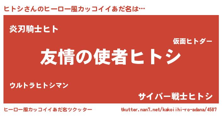 | 女子向けラノベタイトル風あだ名 | 『ヒトシ恋絵巻』『首の姫と首なしヒトシ』 |