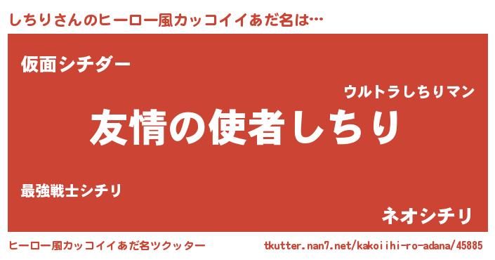 | 男性向けラノベタイトル風あだ名 | 『おまえをオタクにしてやるから、俺をしちりにしてくれ! 』 |