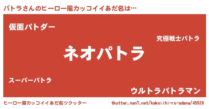 | 意味不明あだ名 | 『永久保存パトラ』『パトラフォーエバー』 |