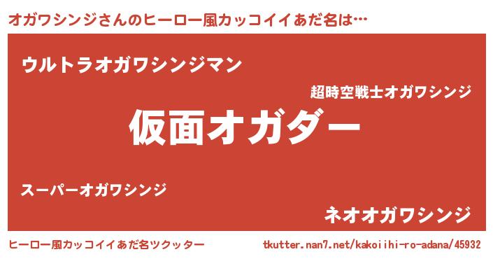 | 男性向けラノベタイトル風あだ名 | 『魔弾の王とオガワシンジ』 |