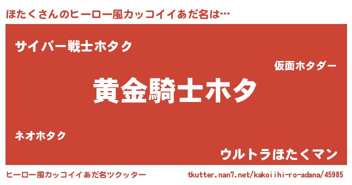 | 胡散臭い通販商品みたいなあだ名 | 『信頼と実績のサプリメント…その名も「ほたく」』 |