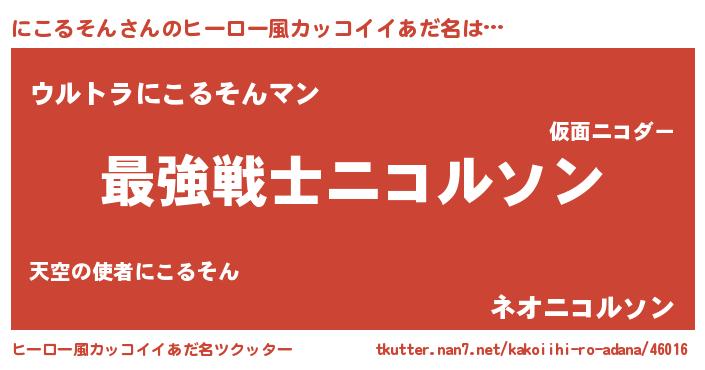 にこるそんさんのヒーロー風カッコイイあだ名をツクッター!