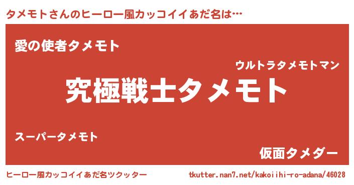 | 男性向けラノベタイトル風あだ名 | 『Re:タメモトから始める異世界生活』 |