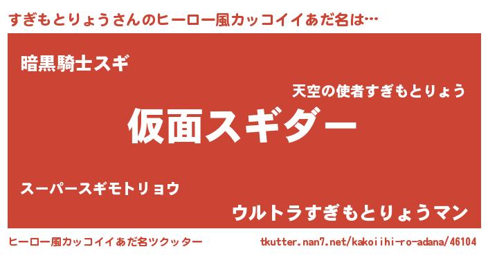 | ポケモン風あだ名 | 『スーギイ』『ヒスギモトリョウ』 |