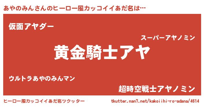 | 女子向けラノベタイトル風あだ名 | 『あやのみんは平凡を望む』 |
