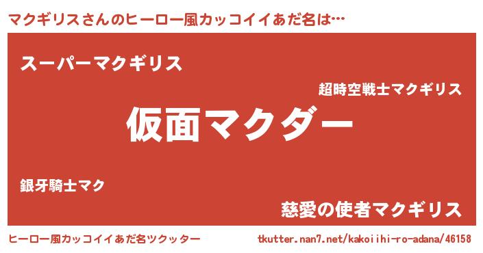 | 意味不明あだ名 | 『住所不定無職マクギリス(9歳)』 |