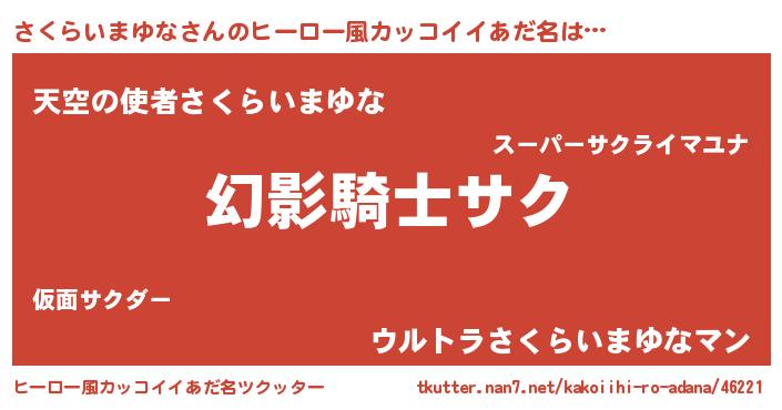 | 男性向けラノベタイトル風あだ名 | 『さくらいまゆなの嫁は女の子じゃないと思った?』 |