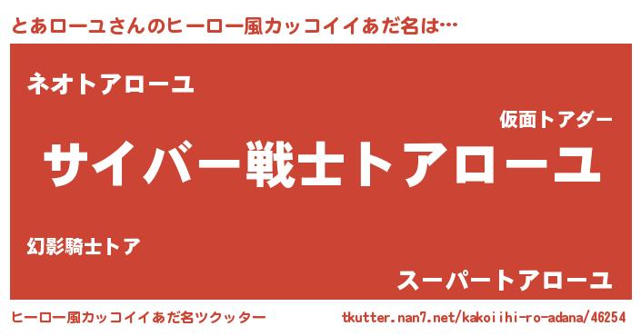 | 意味不明あだ名 | 『自称とあローユ』『永久保存とあローユ』 |