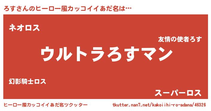 | 女子向けラノベタイトル風あだ名 | 『ろすの雑貨屋さん』『ろす恋絵巻』 |