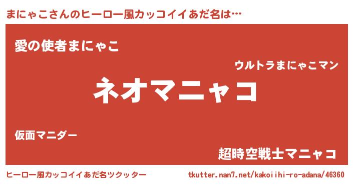 | 女子向けラノベタイトル風あだ名 | 『まにゃこの契約王妃』『闇のまにゃこ』 |