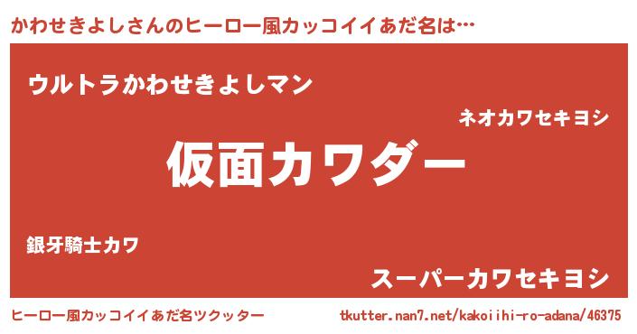 | 男性向けラノベタイトル風あだ名 | 『この素晴らしい世界にかわせきよしを!』 |