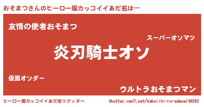 | 男性向けラノベタイトル風あだ名 | 『おそまつの嫁は女の子じゃないと思った?』 |