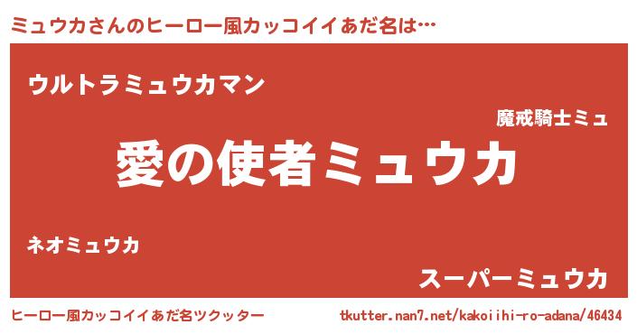 | 女子向けラノベタイトル風あだ名 | 『ミュウカ恋絵巻』『ミュウカ伯爵の花嫁』 |