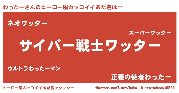 | 意味不明あだ名 | 『自称わったー』『永久保存わったー』 |