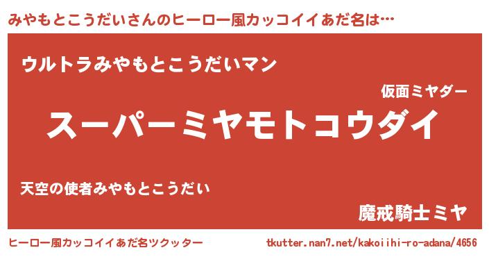 みやもとこうだいさんのヒーロー風カッコイイあだ名をツクッター!