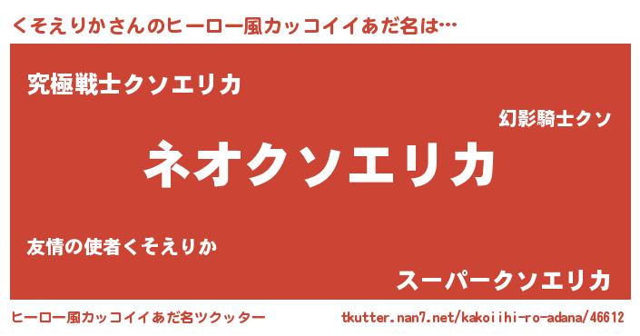 | ヘコむあだ名 | 『くそえりか(震え声)』『くそっふぃ~』 |