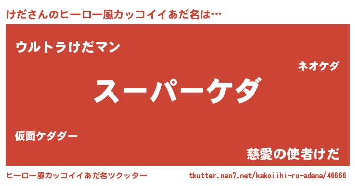 | 男性向けラノベタイトル風あだ名 | 『緋弾のケダ』『ケダアートオンライン』 |