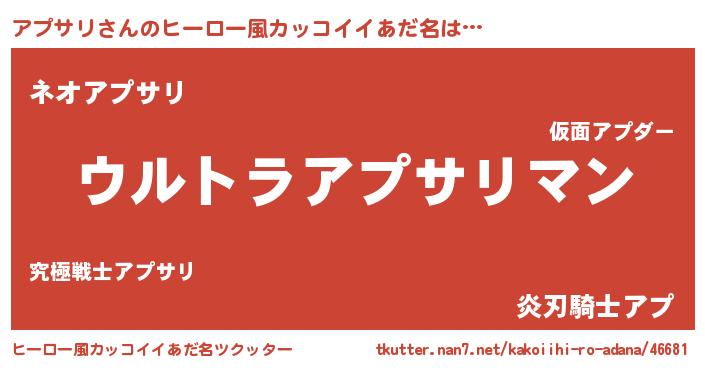 | 男性向けラノベタイトル風あだ名 | 『やはりアプサリの青春ラブコメはまちがっている 』 |