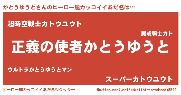 | 男性向けラノベタイトル風あだ名 | 『おまえをオタクにしてやるから、俺をかとうゆうとにしてくれ! 』 |