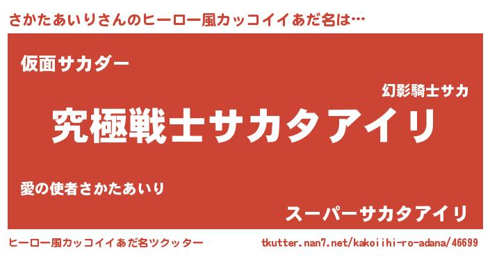 | 男性向けラノベタイトル風あだ名 | 『Re:さかたあいりから始める異世界生活』 |