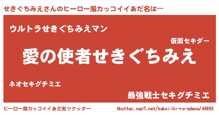 | 肩書あだ名 | 『せきぐちみえ助手』『せきぐちみえ総統』 |