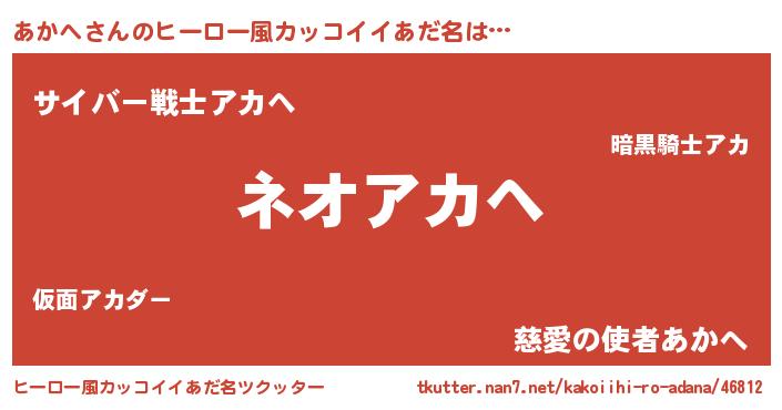| 意味不明あだ名 | 『永久保存あかへ』『自称あかへ』 |