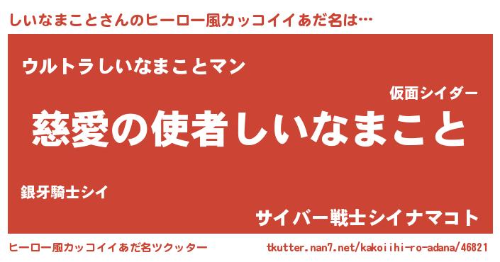 | 欧米人風あだ名 | 『しいなまこと・ステッグマイヤー』 |