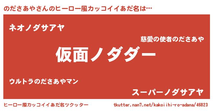 | 男性向けラノベタイトル風あだ名 | 『この素晴らしい世界にのださあやを!』 |