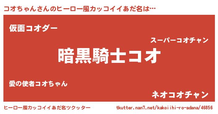 | 男性向けラノベタイトル風あだ名 | 『緋弾のコオチャン』『コオちゃんの憂鬱』 |