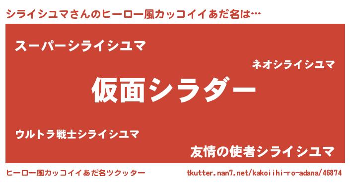 | 意味不明あだ名 | 『住所不定無職シライシユマ(98歳)』 |