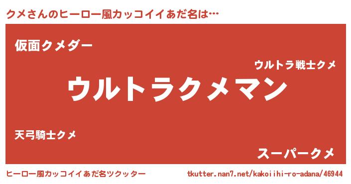 | ポケモン風あだ名 | 『クメダネ』『クーメイ』『クメゴンZ』 |