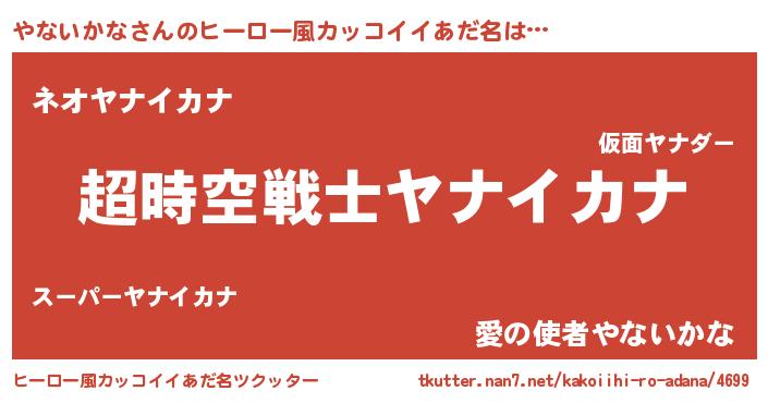 | 女子向けラノベタイトル風あだ名 | 『やないかななんてお断りですっ。』 |
