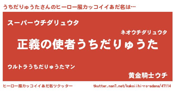 | 男性向けラノベタイトル風あだ名 | 『おまえをオタクにしてやるから、俺をうちだりゅうたにしてくれ! 』 |
