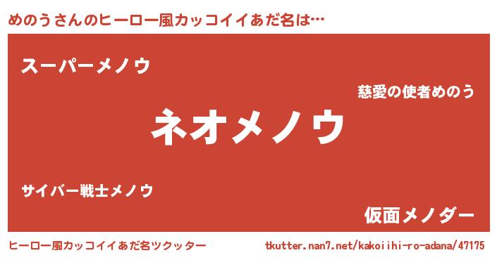 ヘコむあだ名 | 『めのう(震え声)』『めのもー』 |