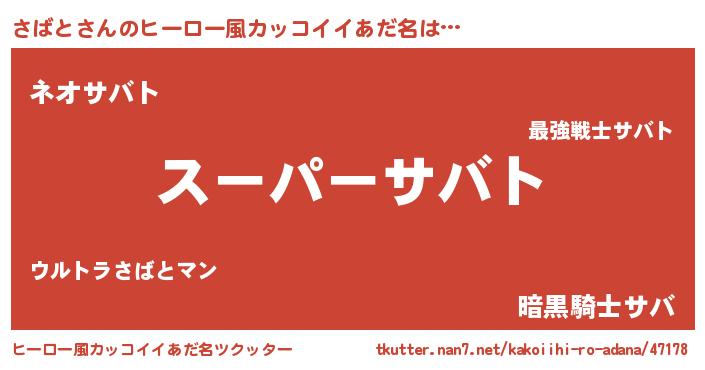 | 男性向けラノベタイトル風あだ名 | 『転生したらさばとだった件』 |