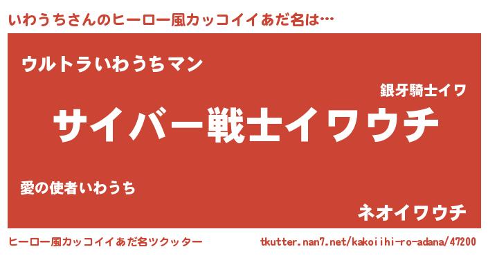 | 男性向けラノベタイトル風あだ名 | 『Re:いわうちから始める異世界生活』 |