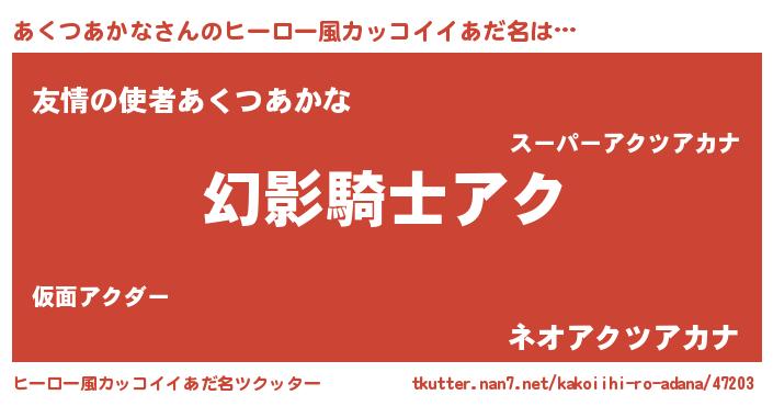 | 意味不明あだ名 | 『とにかく怪しいあくつあかな』 |
